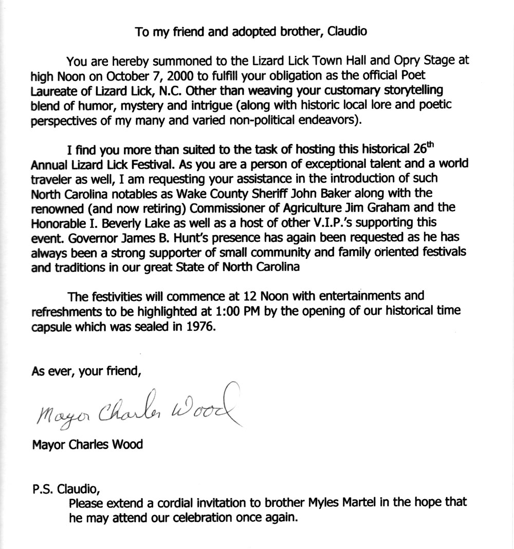 Mayor Charles Wood Letter – Claudio Oswald Niedworok | Author, Actor, Narrator, Visual/Graphic Artist, Recording Artist, Performance Artist, Poet, Monologuist